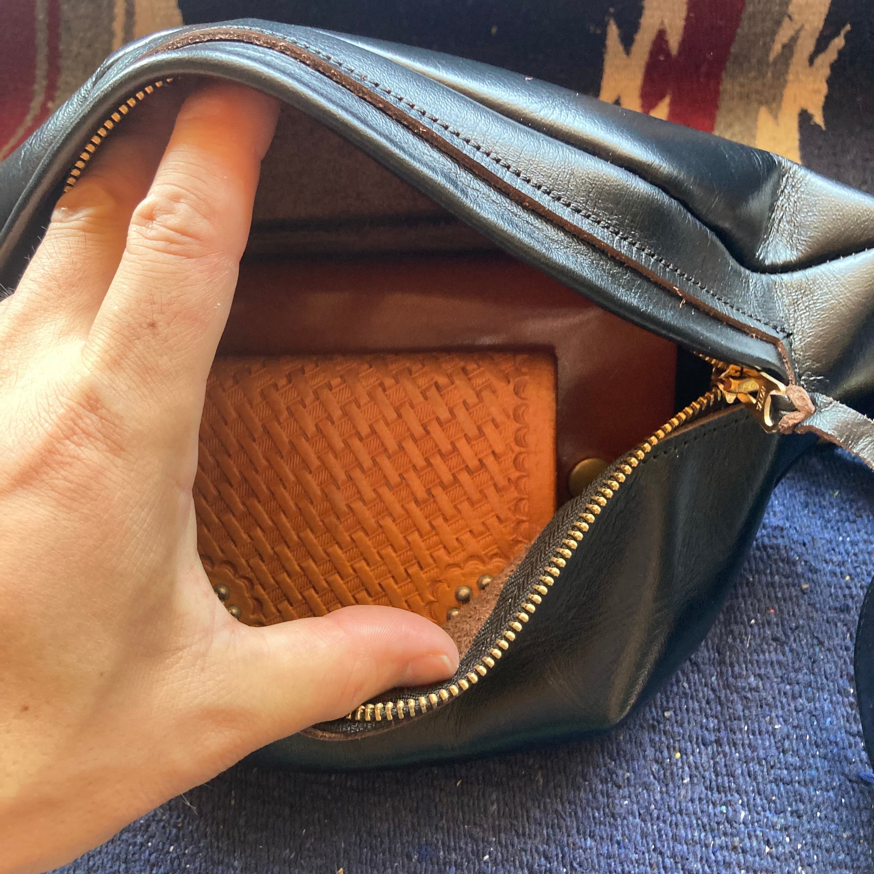 ジッパーはタロンのダブルジッパーを使い金具は真鍮製にしていますので革と共に経年変化も楽しめます。