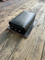 スポンジ整形、縫い、全て手作業でしています。薄型でどんな車両にも合わせやすいと思います。牛革より高価で希少な馬革で作りました。昔の革物には馬革が多く使われています。そちらを参考に製作してみました。茶芯になりますので表面が擦れてきたらヴィンテージ感が出ると思います