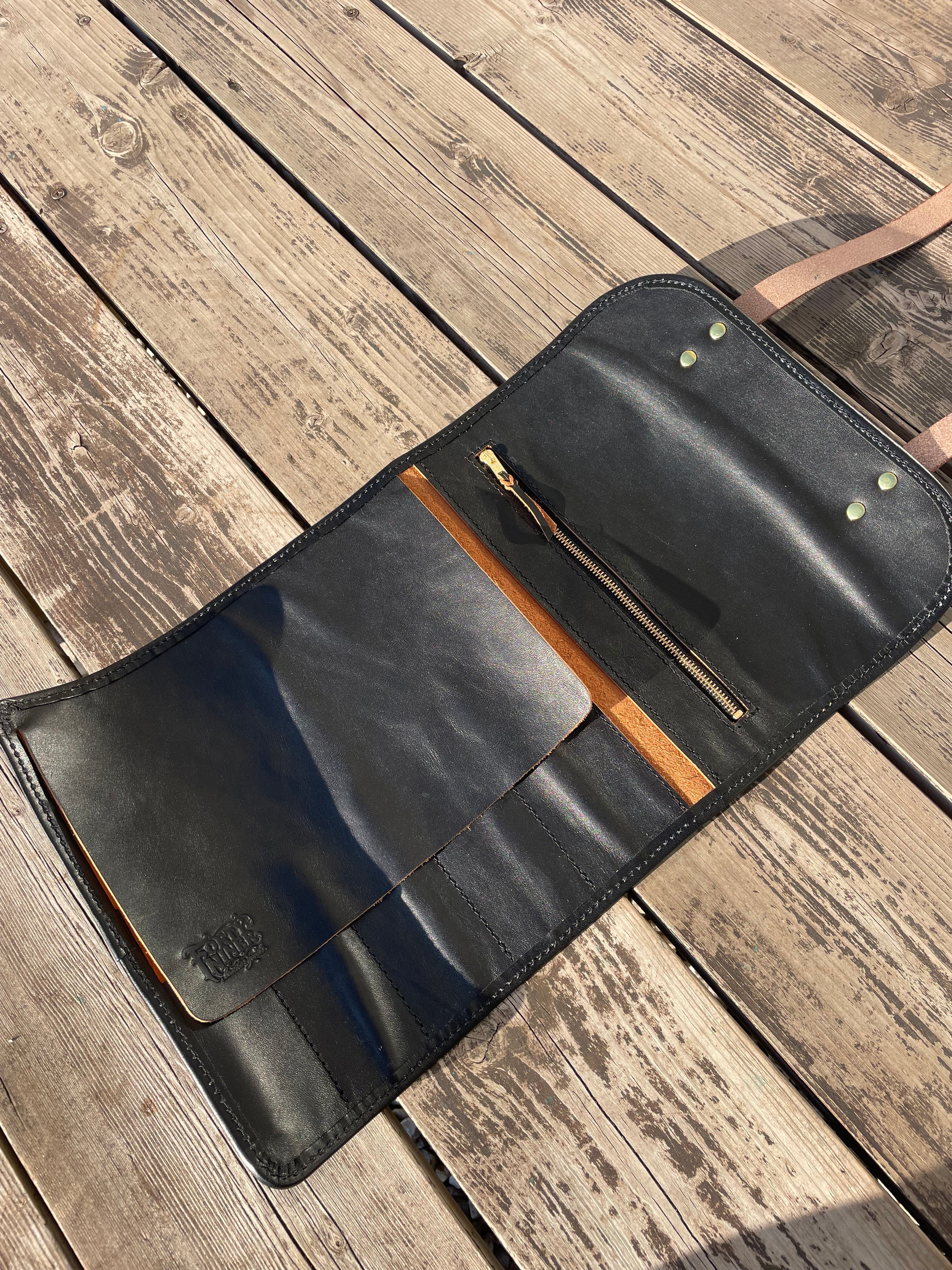 ツールロールのボディーは希少なホースレザーの茶芯を使っています。