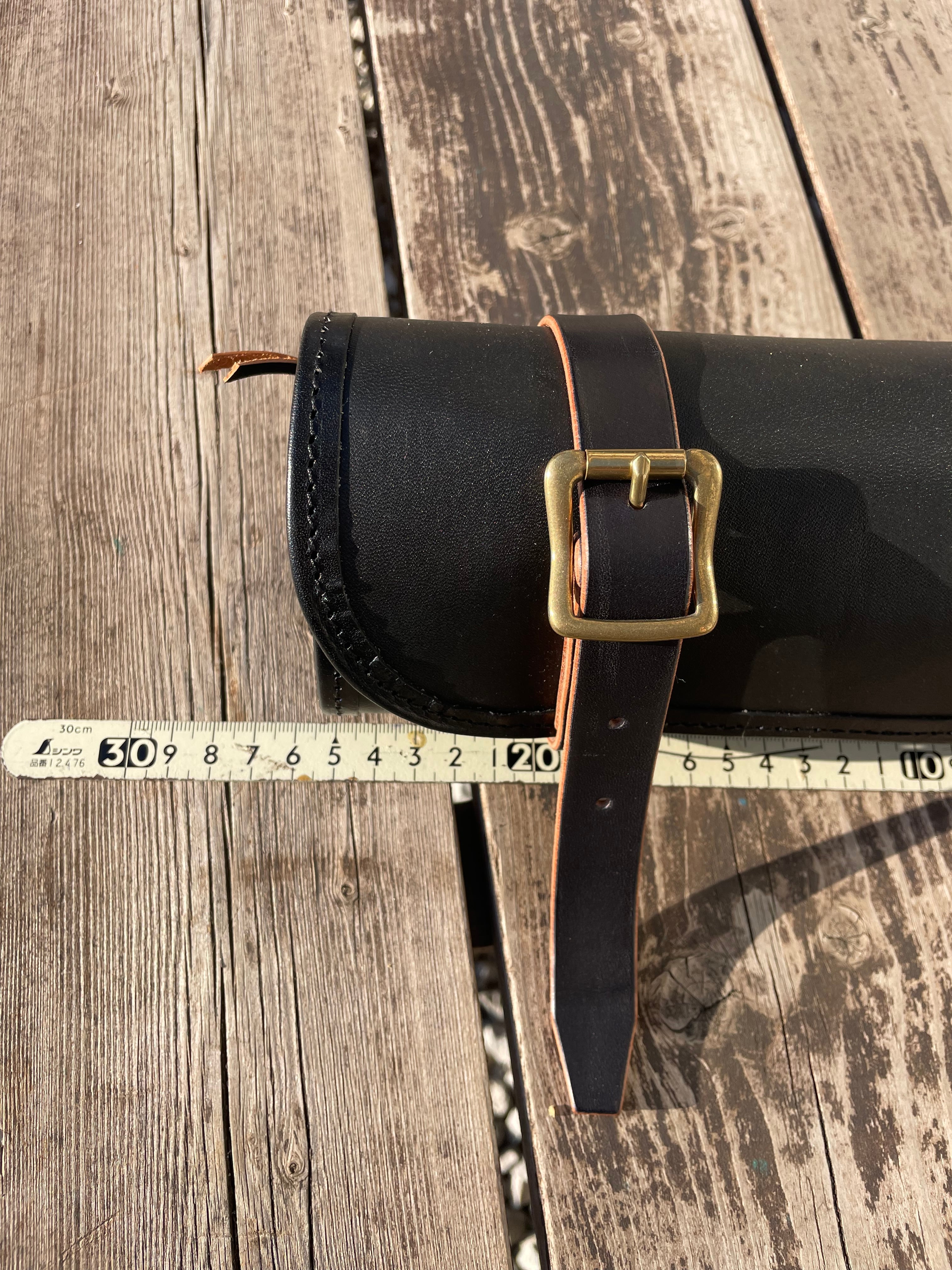 ベルト部は強度が必要な為、栃木レザーの牛革ナチュラルをブラックに染めて使用しました。
